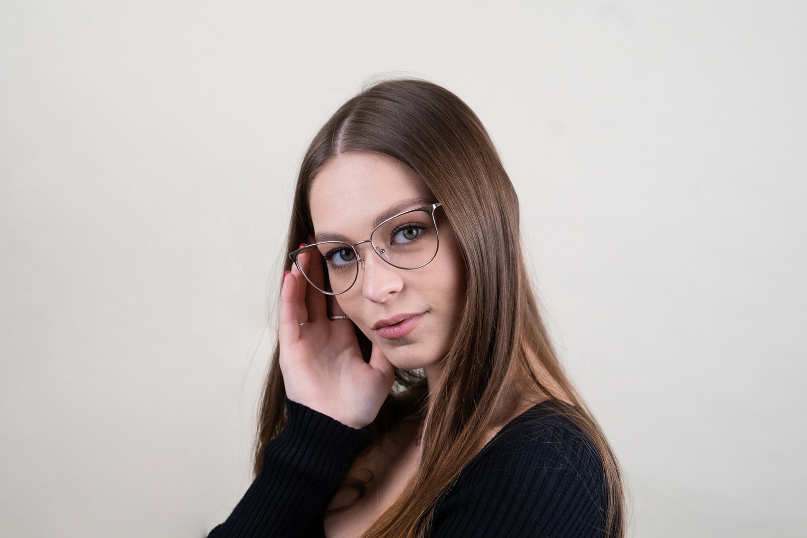 Die rosa Farbe der Brillenfassung passt perfekt zu kühlen Hauttönen und