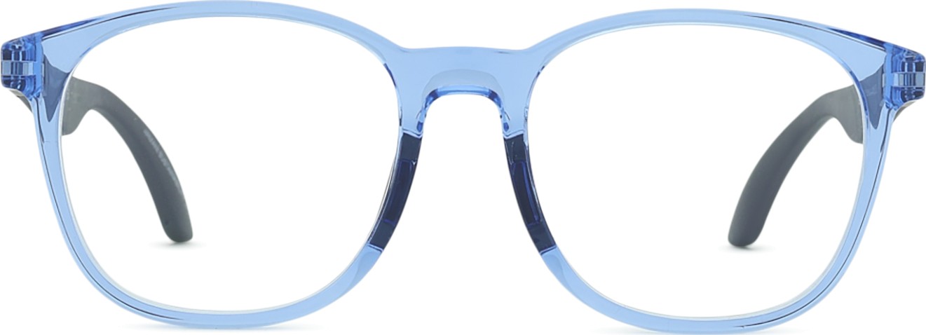 Die blaue Farbe der Brillenfassung passt perfekt zu kühlen Hauttönen und