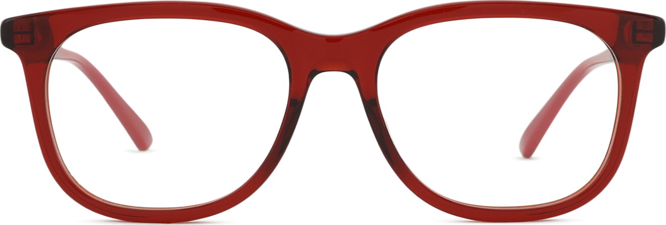 Die rote Farbe der Brillenfassung passt perfekt zu warmen Hauttönen und