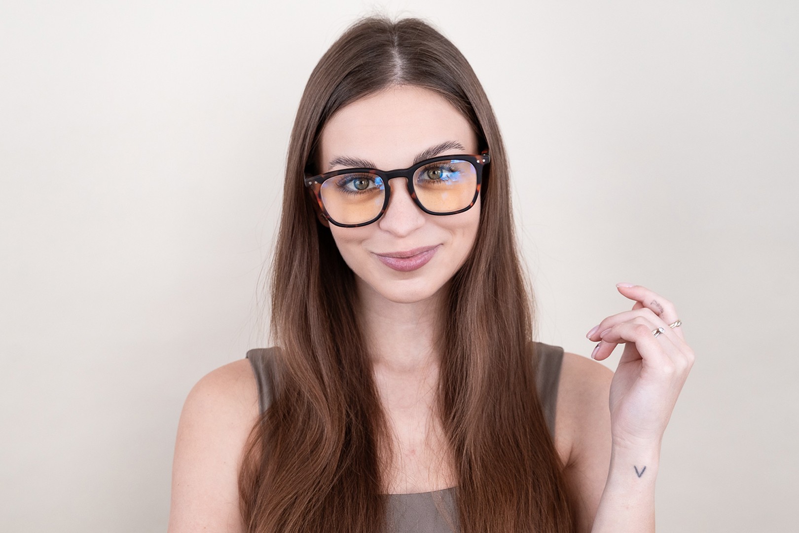 - Die braune Farbe der Brillenfassung passt perfekt zu warmen Hauttönen und hellbraunem, schwarzem oder dunkelblondem Haar.