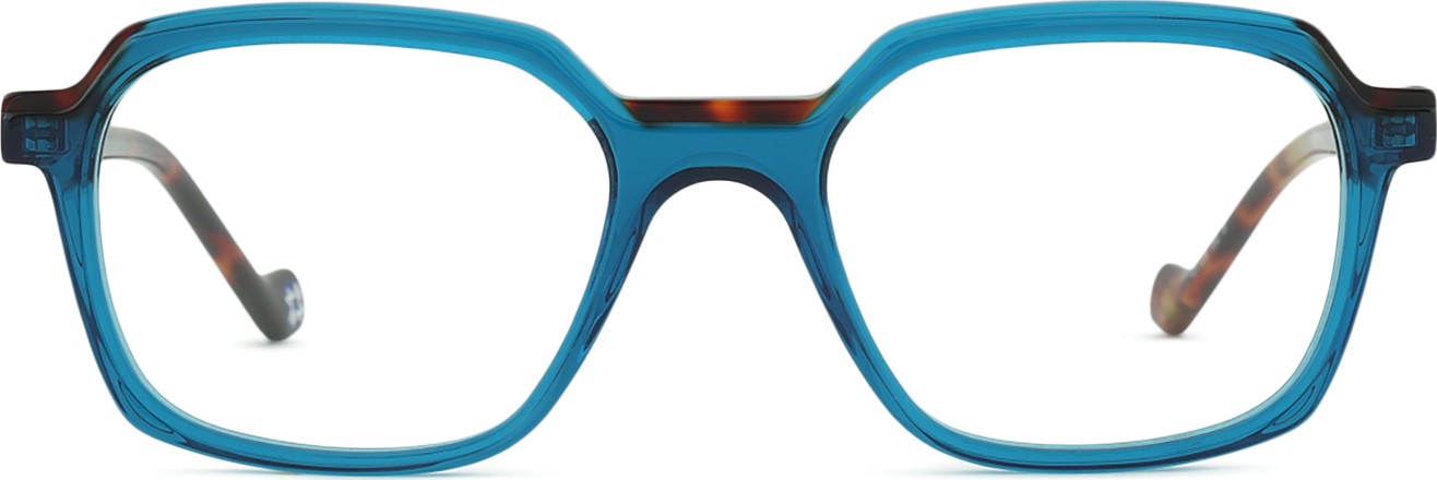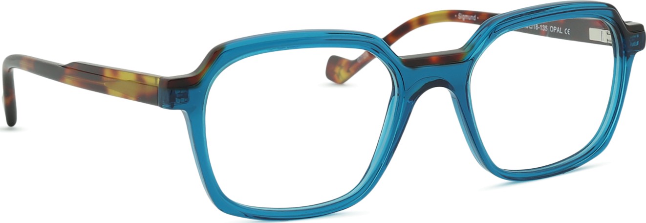 Die blaue Farbe der Brillenfassung passt perfekt zu kühlen Hauttönen und