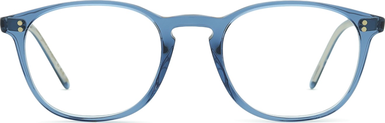 Die blaue Farbe der Brillenfassung passt perfekt zu kühlen Hauttönen und