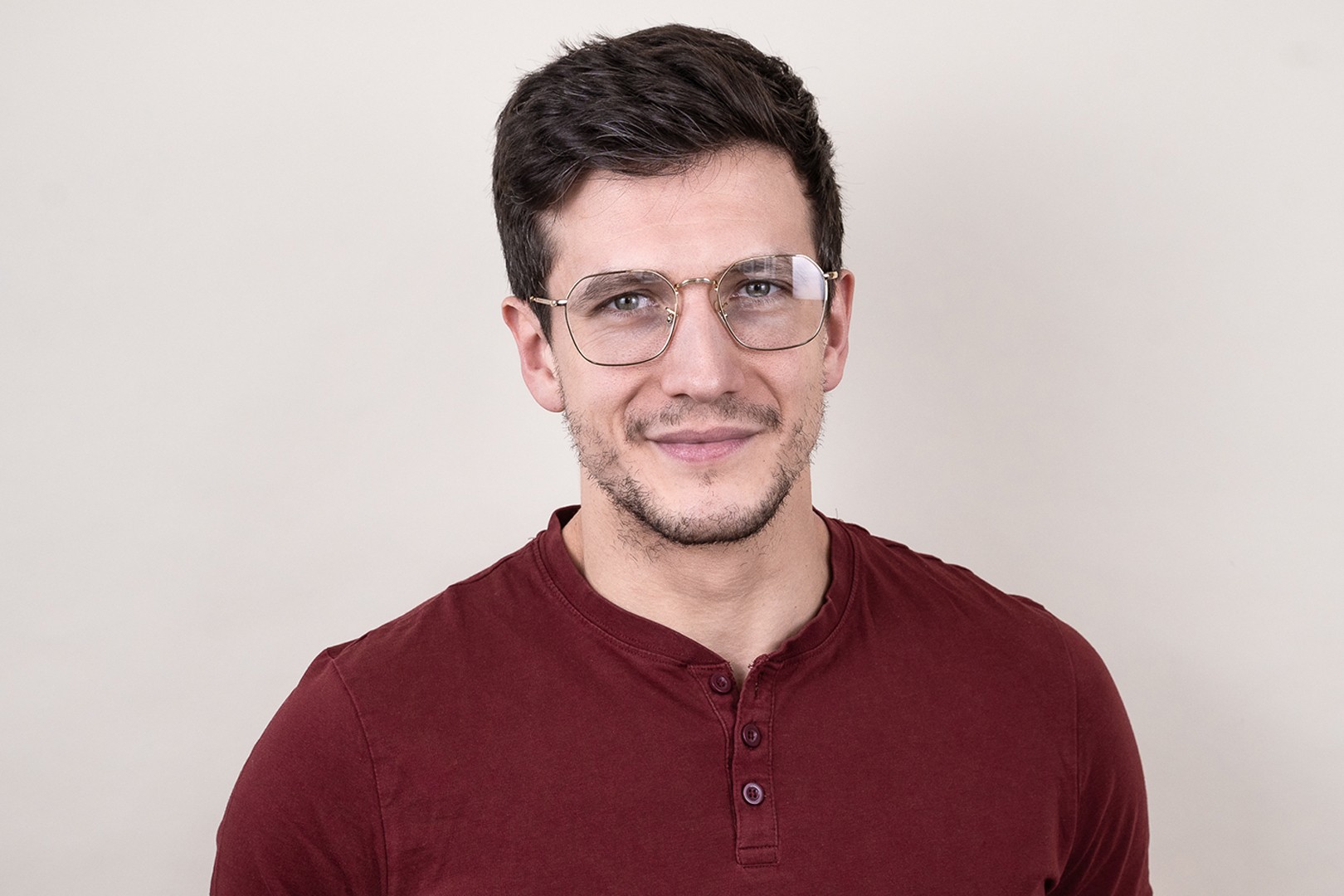 Die goldene Farbe der Brillenfassung passt perfekt zu warmen Hauttönen und