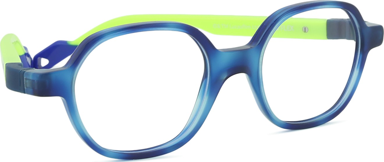 Die blaue Farbe der Brillenfassung passt perfekt zu kühlen Hauttönen und