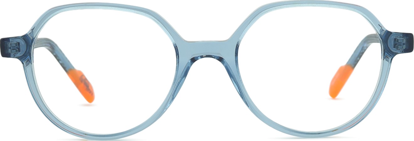 Die blaue Farbe der Brillenfassung passt perfekt zu kühlen Hauttönen und