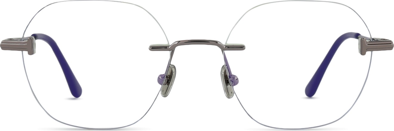 Randlose oder gebohrte Brillen bestehen aus Nasenpads, Scharnieren und Bügeln.
